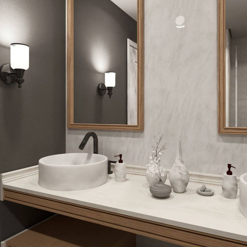 An elegant and luxurious option for interior upgrades that won't go over budget, The Panel Company's large marble effect PVC shower panels come in a subtle grey marble colourway that is perfect for contemporary bathrooms. Whether you're looking to complete a new shower area with marble effect shower panels or are taking the plunge with a full bathroom cladding upgrade, this subtle grey marble design scheme is a beautiful choice.