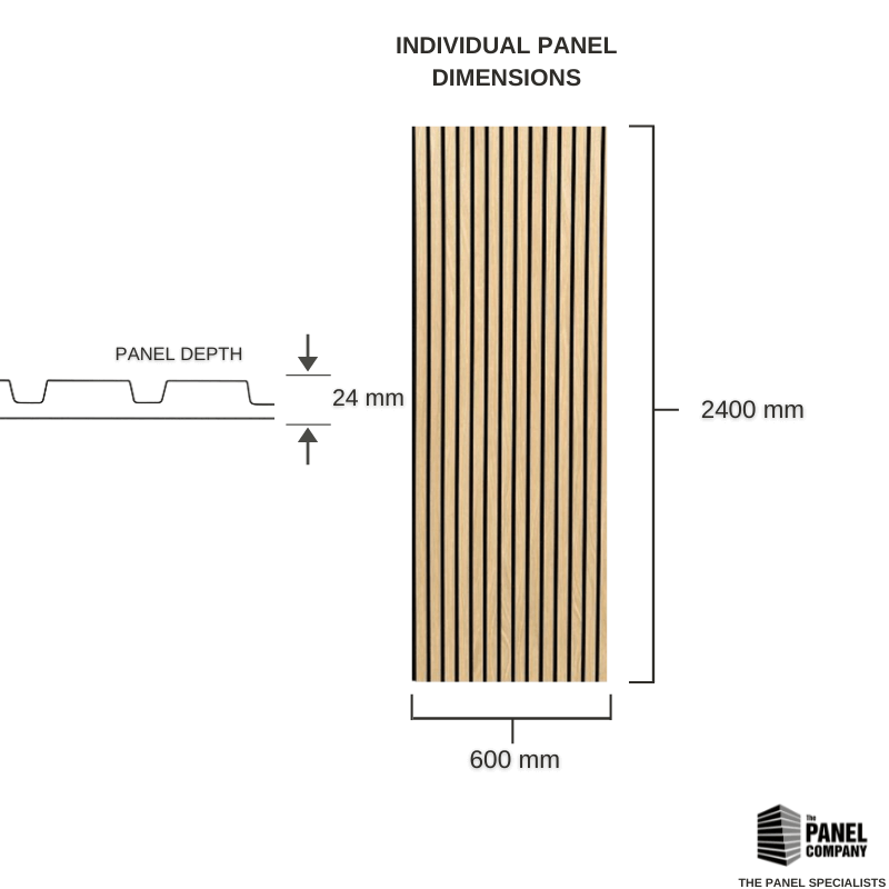 Overall Thickness : 24mm (Felt backing: 9mm, Slat strips 15mm)