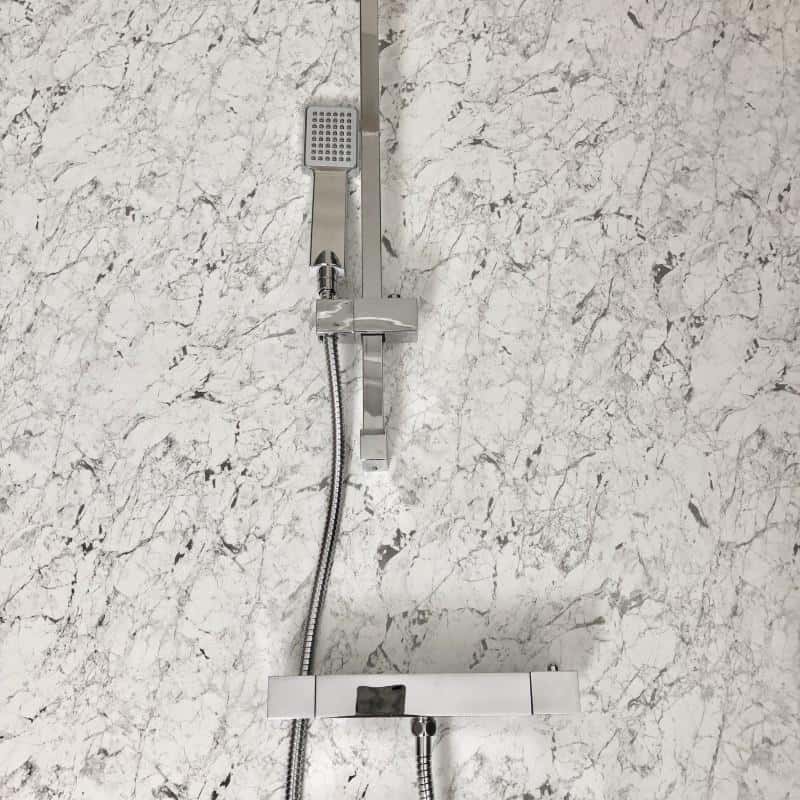 - Shower Panel With A Grey Marble Pattern On Plain White Background