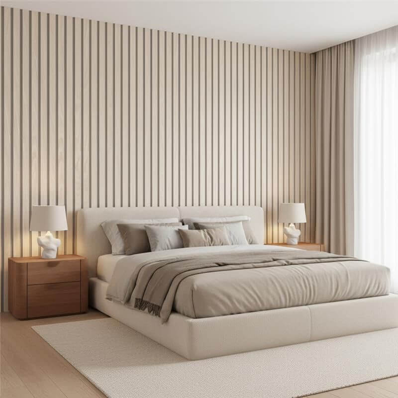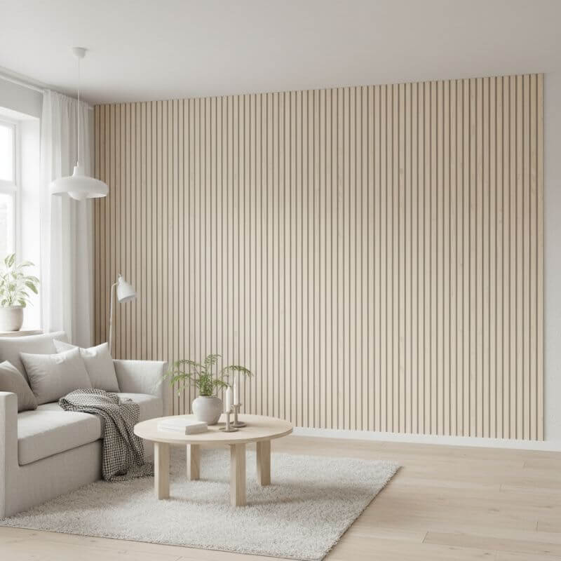 The panels are constructed from MDF Wooden Slats with three sided veneer & PET Polyester fibre with sound-absorbing properties. Don't settle for ordinary walls, upgrade to our light ash slat wall panels and transform your space into a stunning masterpiece!