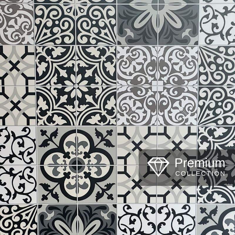 The Patchwork Black tile effect shower panel has a distinctive high definition patchwork print consisting of a multitude of black, grey & beige tones in a matt square tile, complete with a light grey grout line that gives an authentic look.