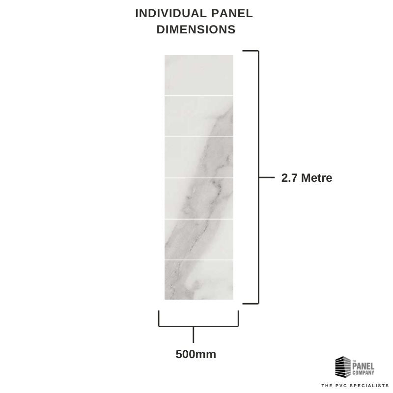 This tile wall panel has a white marble effect with a textured bevelled grout line.
