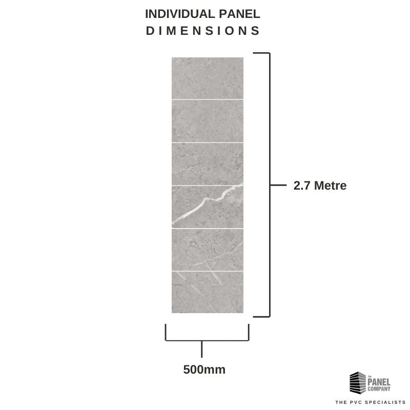This tile wall panel has a light grey marble effect with a textured bevelled grout line.