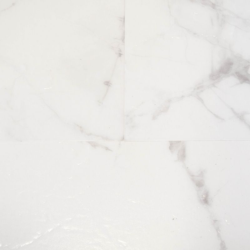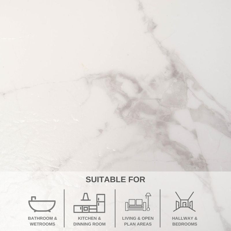 Matt Jura Carrara Marble Stone SPC Luxury Vinyl Click Flooring | This Carrara Marble SPC Flooring has an embossed natural look and feel with anti bacterial properties. Pet friendly and easy to clean this flooring is ideal for those high traffic areas in your home.