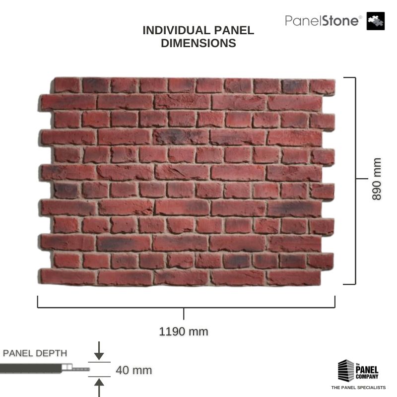 Old British Brick Aged Red Decorative Wall Paneling - Complete with a real crushed stone construction