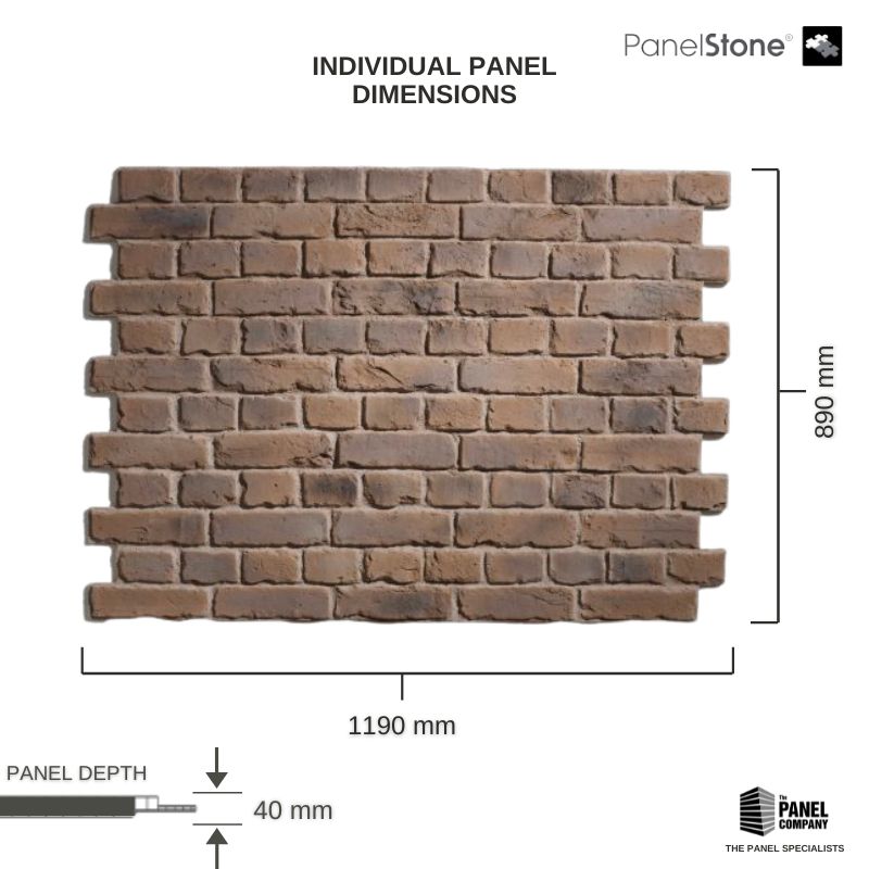 Old British Brick Brown Decorative Wall Paneling - Complete with a real crushed stone construction