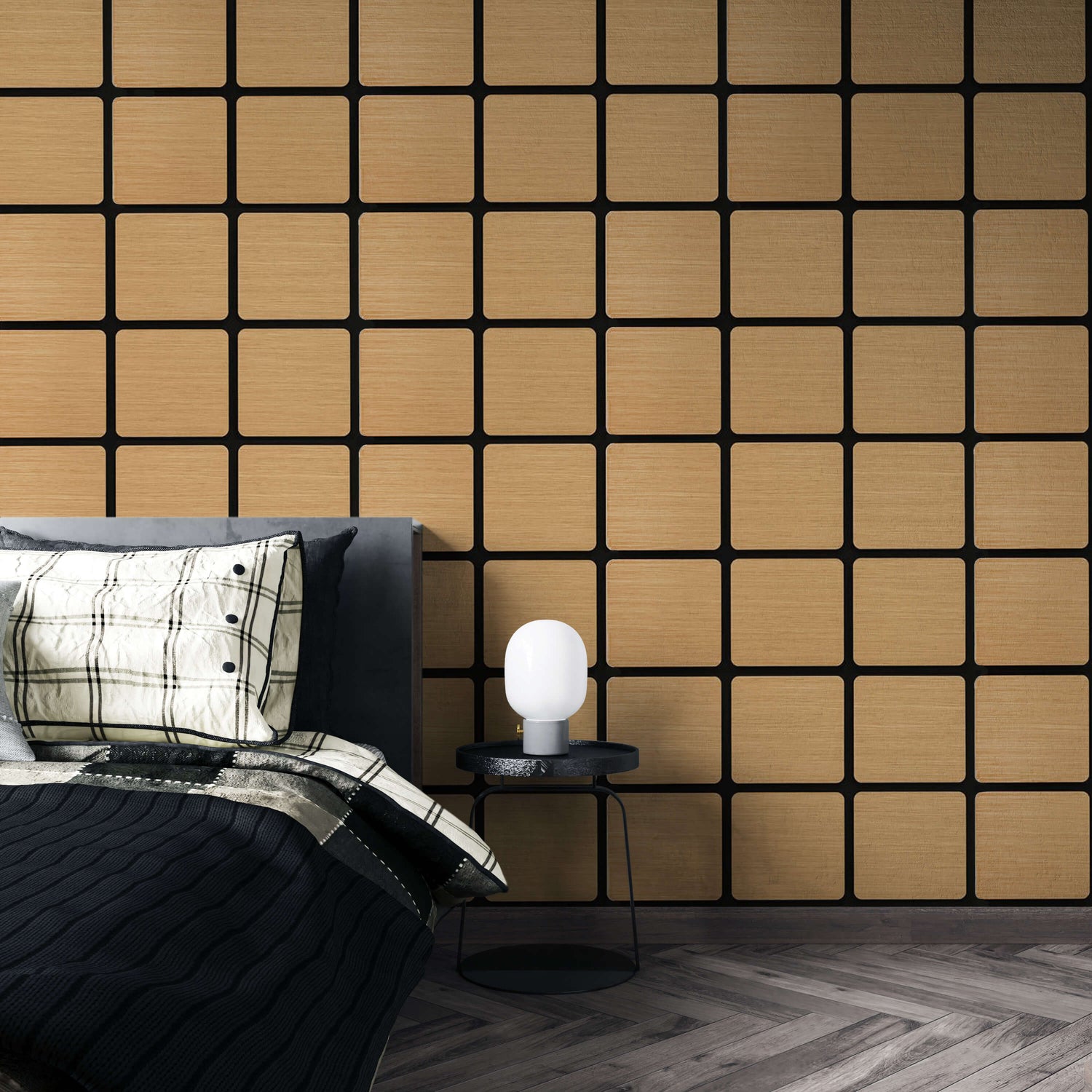 The panel features a striking grid of nine perfectly square sections, each finished in a natural, rich wood veneer. This linear, geometric design adds a clean, modern, and aesthetically pleasing element to any wall, seamlessly blending functionality with interior style.
