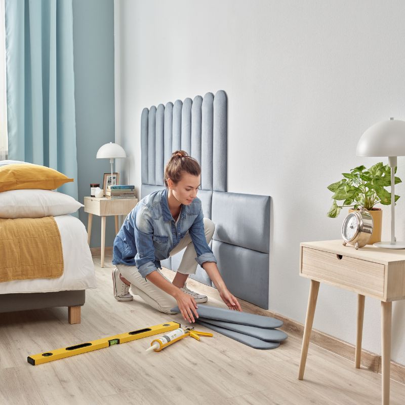 Crafted with attention to detail, the panel features high-quality upholstery in a chic Grey shade. The soft and luxurious fabric not only enhances the visual appeal but also provides a comfortable and inviting feel. Its padded surface creates a cozy and welcoming atmosphere, allowing you to relax and unwind in style.