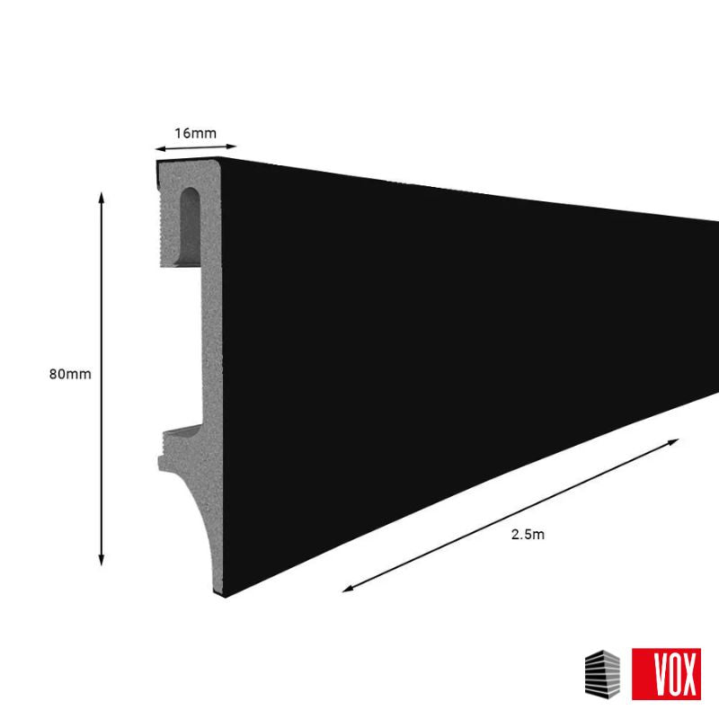 Black Vox Espumo Skirting Board - This skirting board provides exceptional product resistance to bacteria, fungi and moisture. Manufactured in Kerracore technology, this skirting board doesn't require and specialist tools for installation, simply glue directly to the wall using a mounting glue. Install this skirting to protect your walls from scuffs and daily through traffic, skirting is easy to clean simply - wipe down with a warm damp cloth. Add a touch of elegance to your home interiors with this anthracite skirting board.