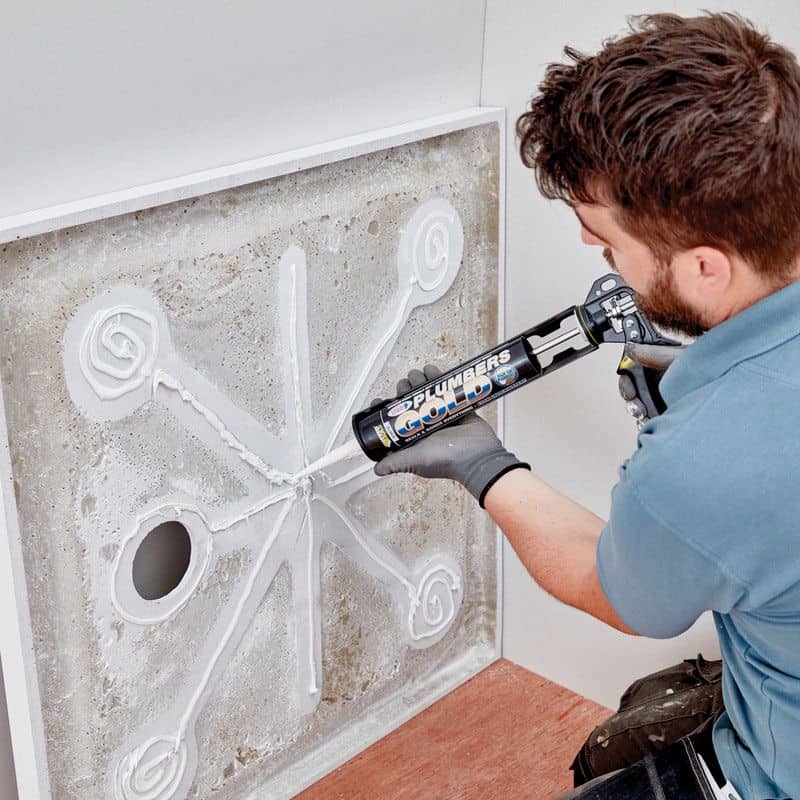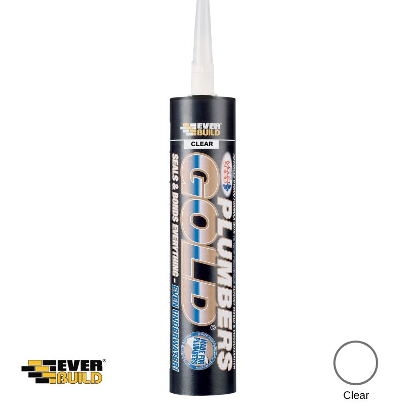 Plumbers Gold Clear from Ever Build is a flawless primer-less adhesive with a mould shield silicone sealant, this adhesive can even be applied to wet surfaces and will even work when underwater! This adhesive has been specially formulated for the plumbing professional. A sealant that has been based on hybrid polymer technology offering outstanding adhesion to all bathroom, wet room, sanitary, kitchen and plumbing materials.