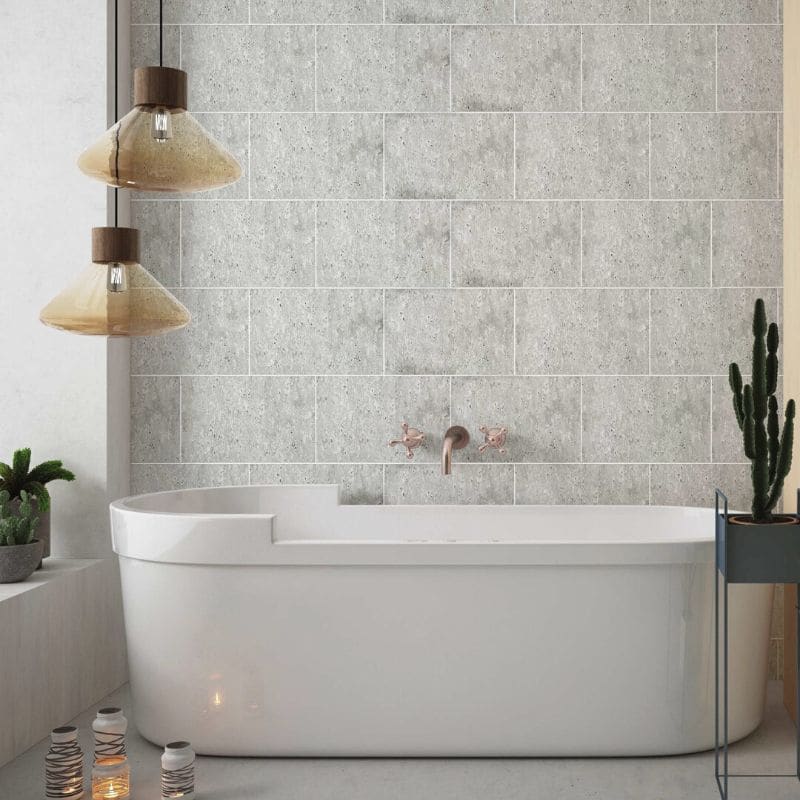 These tile effect bathroom wall panels are designed to be fitted vertically or horizontally as a staggered brick effect. They are ideal for bathrooms, showers, kitchens and wet rooms but can also be used in any room of your home.