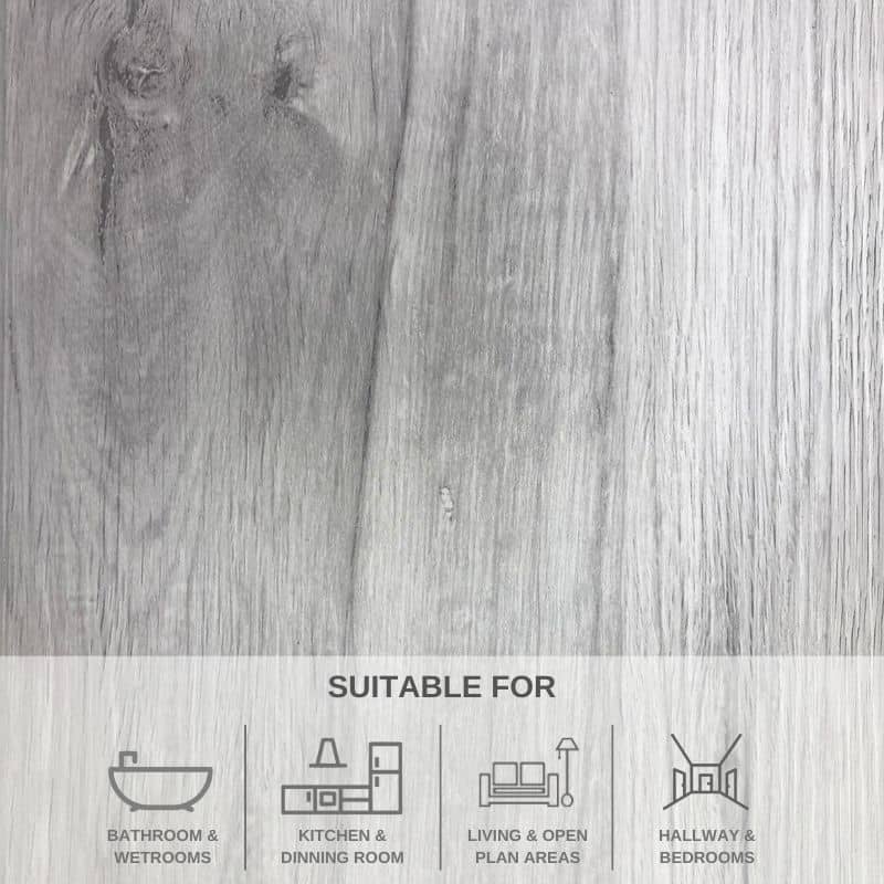 • 100% Water Proof making it ideal for high traffic areas such as kitchens, hallways and bathrooms