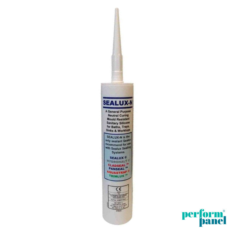 Our recommended sealant is our Perform Panel silicone which is available in white, clear or colour matched.