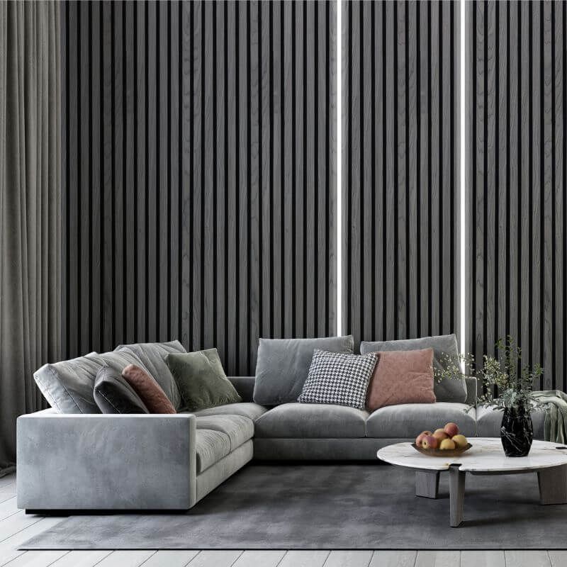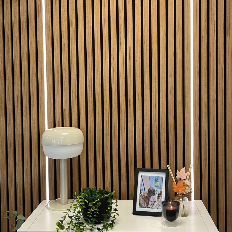 Want to elevate your acoustic slat wall panels from simply functional to fabulously functional? Look no further than our innovative, integrated LED light strips! These strips seamlessly install within your panels, casting a warm glow that enhances the beauty of your slat wall while providing soft, ambient lighting.